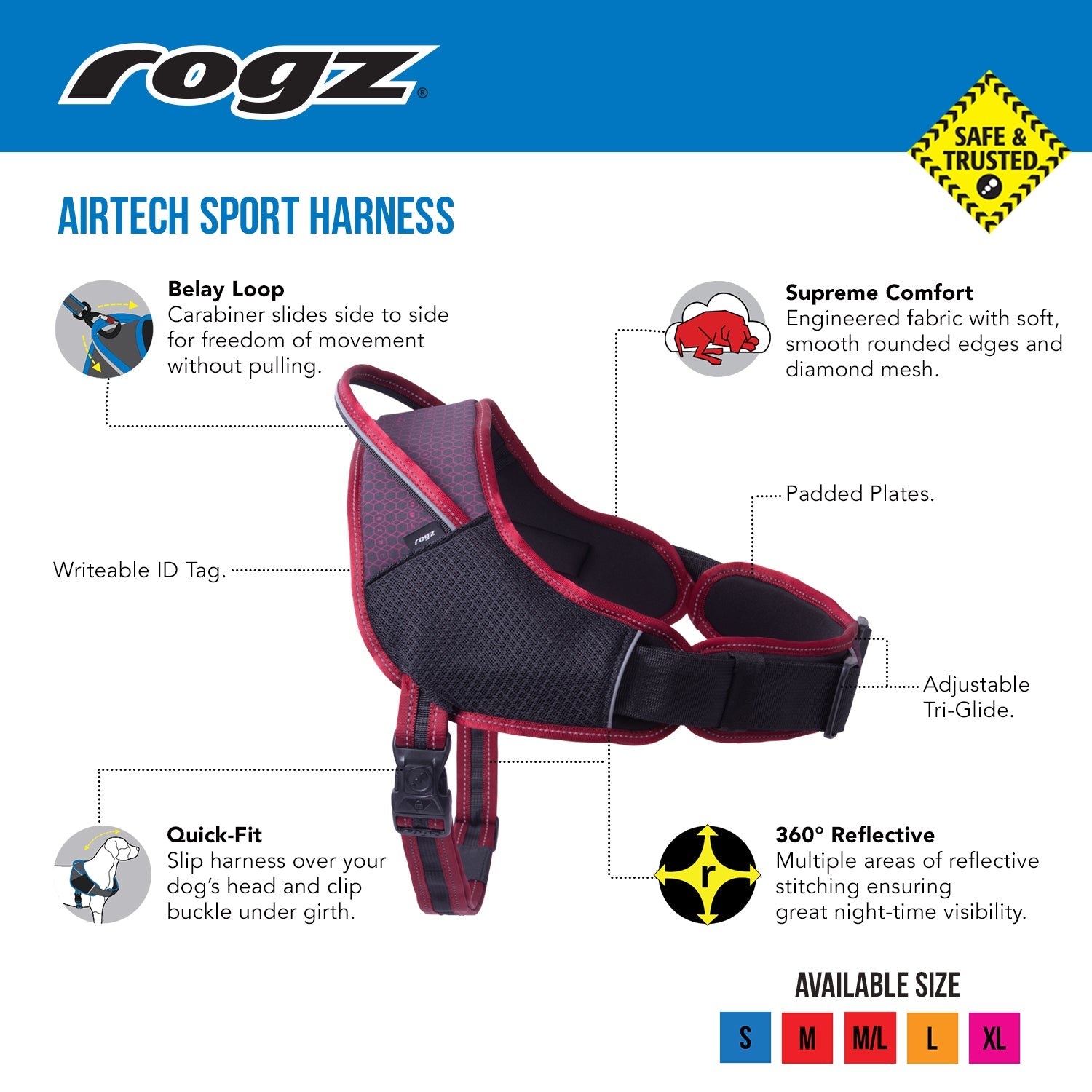 Perfect for everyday wear, the AirTech Classic Collar is crafted from lightweight engineered fabric with smooth, rounded edges and diamond mesh for supreme comfort. The RogLoc contoured buckle ensures a safe, secure fit, while reflective stitching enhances visibility and safety on low-light walks.AirTech Sport Harness