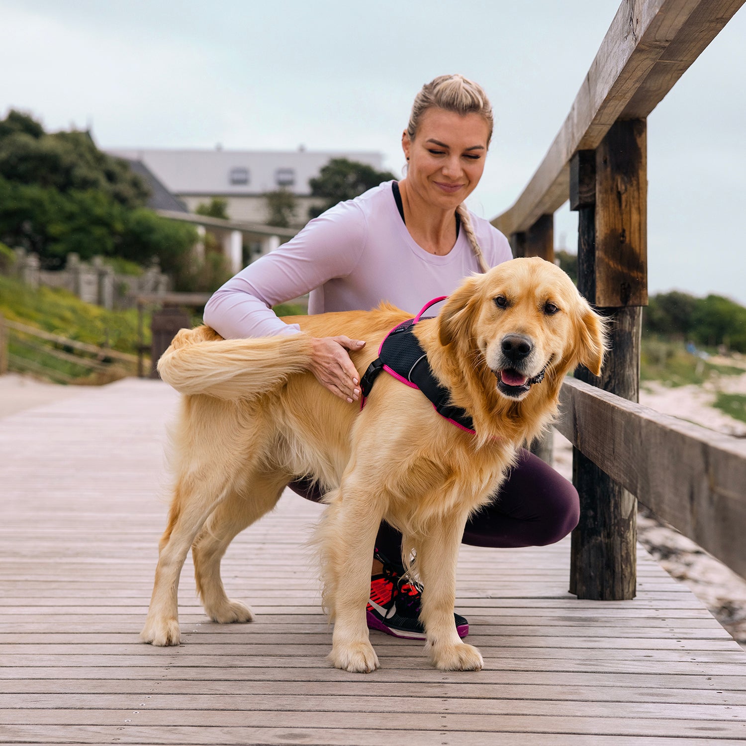 Designed for active dogs, this breathable and lightweight harness provides maximum comfort and control during sports.